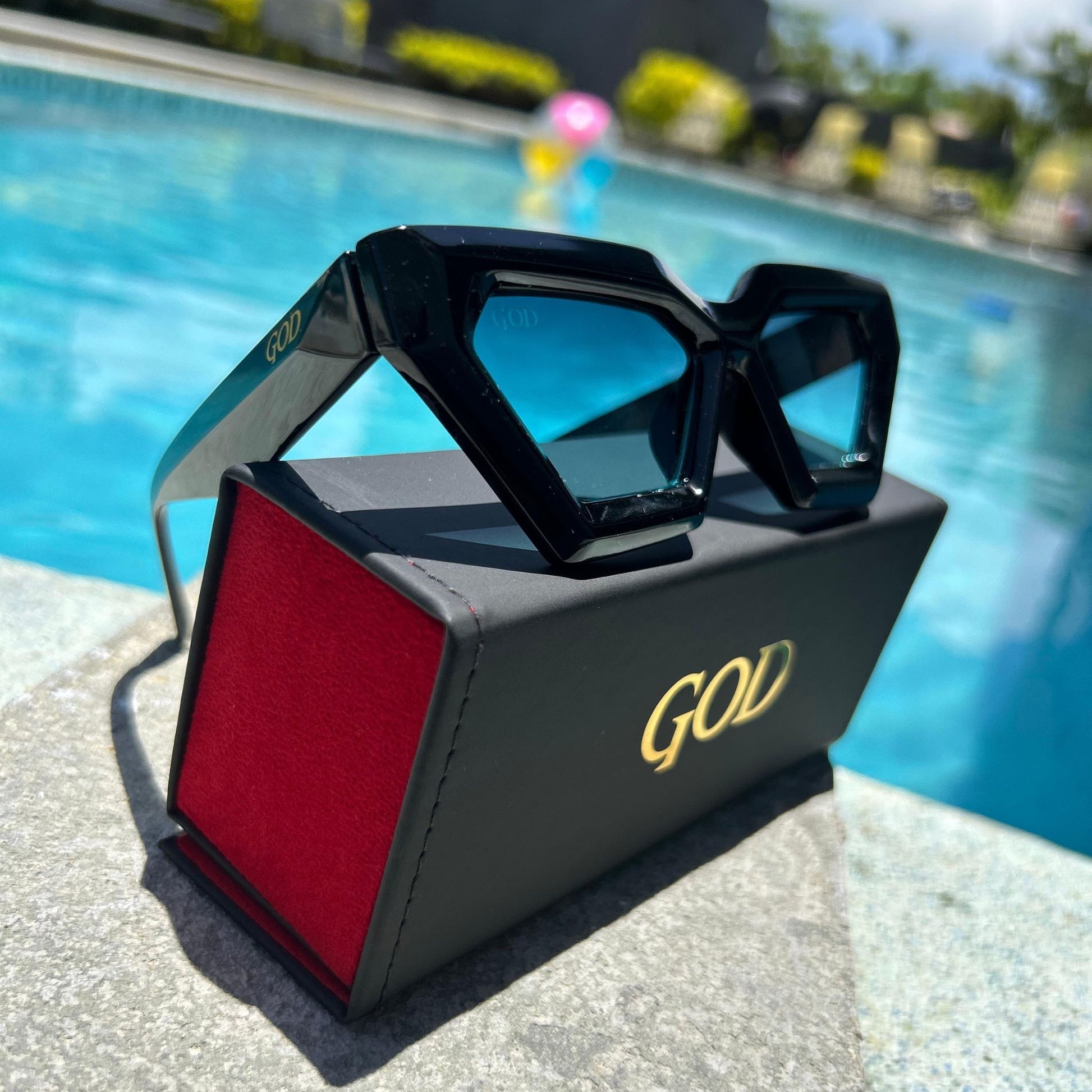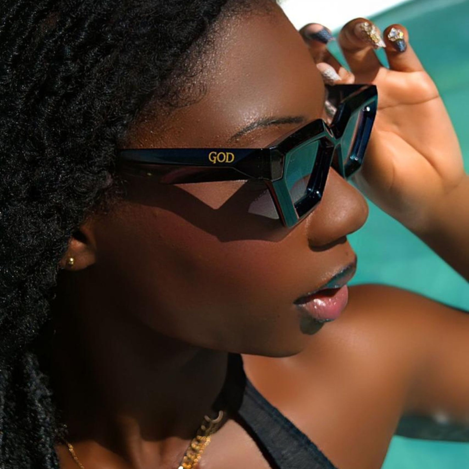 Made from glossy, lightweight plastic and fitted with tinted lenses that balance style and sun protection, these shades are easy to wear and impossible to ignore. GOD signature accents complete the look with a clean gold finish that flexes without saying a word.